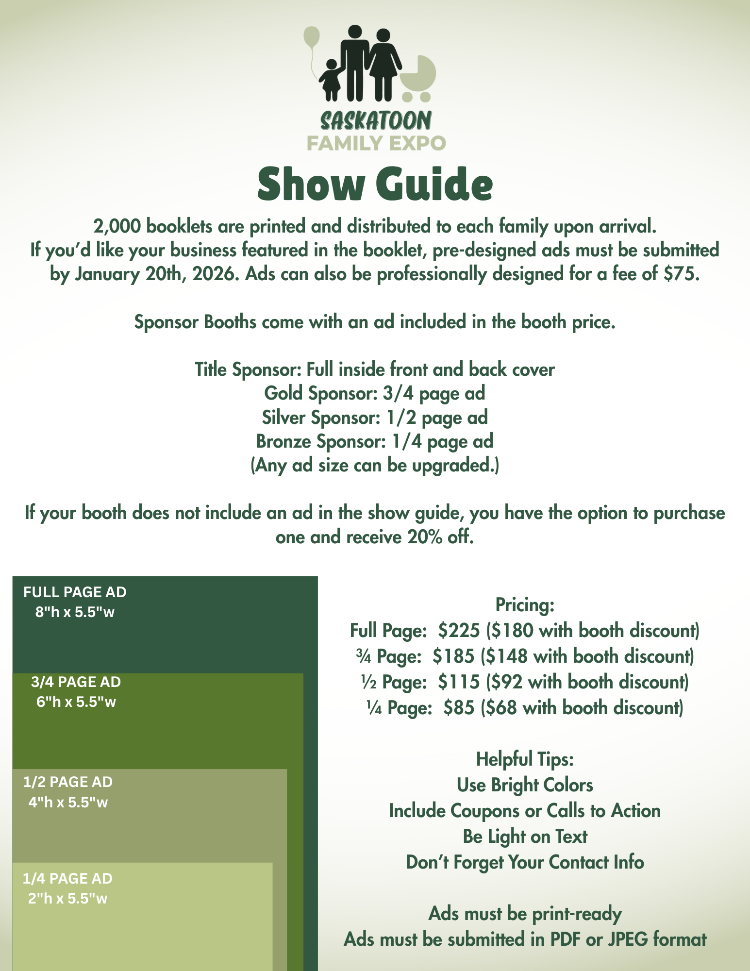- Sponsors business logo and website link would be posted on saskatoonfamilyexpo.com
